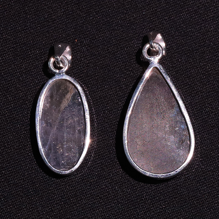 Kategorie(n): Anhänger - Silberanhänger 925 Stein(e): Labradorit Gewicht des sets: 16,77g Anzahl der Anhänger im set: 2 Größe des kleinsten Anhängers (ohne Öse): 26mm Größe des größten Anhängers (ohne Öse): 31mm Farbe(n): Grau / Violette Reflexe Qualität: AAA = Beste Mögliche Qualität