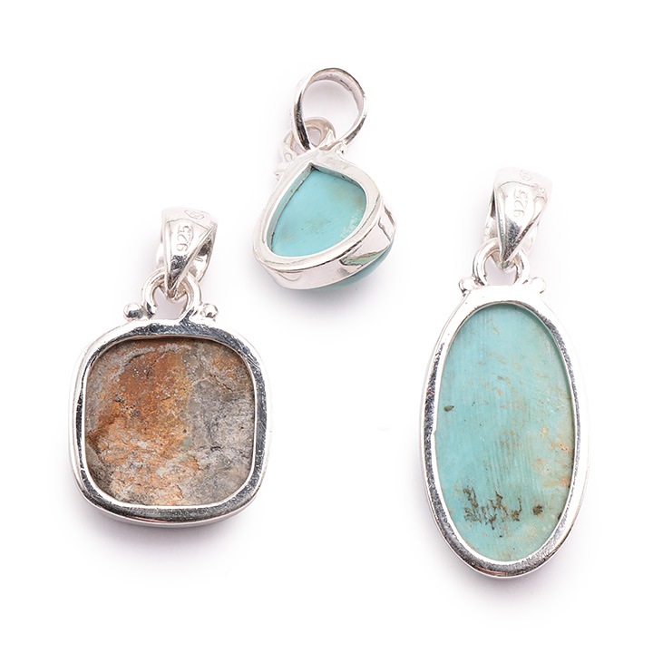 Kategorie(n): Pendentifs - Pendentifs Silber 925 Stein(e): Türkis Gewicht des Loses: 15.96g Anzahl der Anhänger in der Partie: 3. Größe des kleinsten Anhängers (ohne Clip) : 14mm Größe des größten Anhängers (ohne Clip) : 28mm Farbe(n) : Türkisblau . Qualität: AA = Sehr hoch