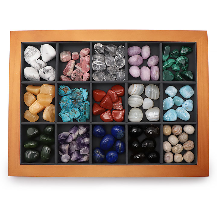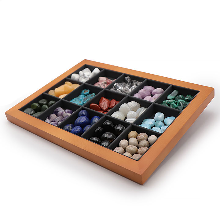 Dieses Display kann Anhänger, Armbänder, Trommelsteine usw. enthalten...