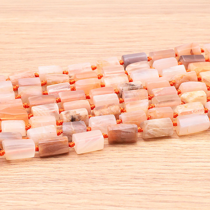 Perlenstrang Röhren 08 x 12mm mehrfarbiger Mondstein A