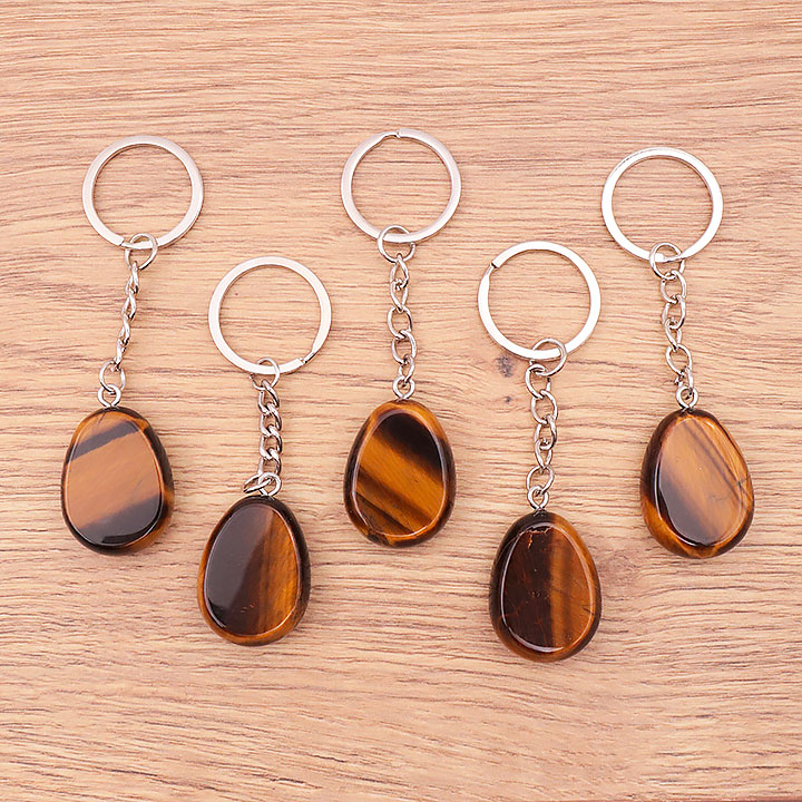 Tigerauge-Trommelstein-Schlüsselanhänger A (set 5 Stück)