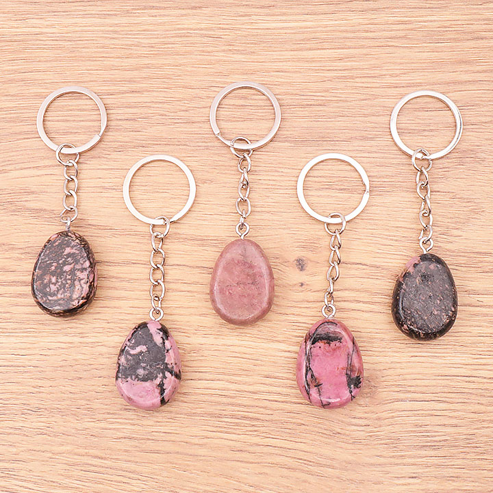 Schlüsselanhänger Tropfenform Rhodonit Madagaskar A (Set 5 Stück)