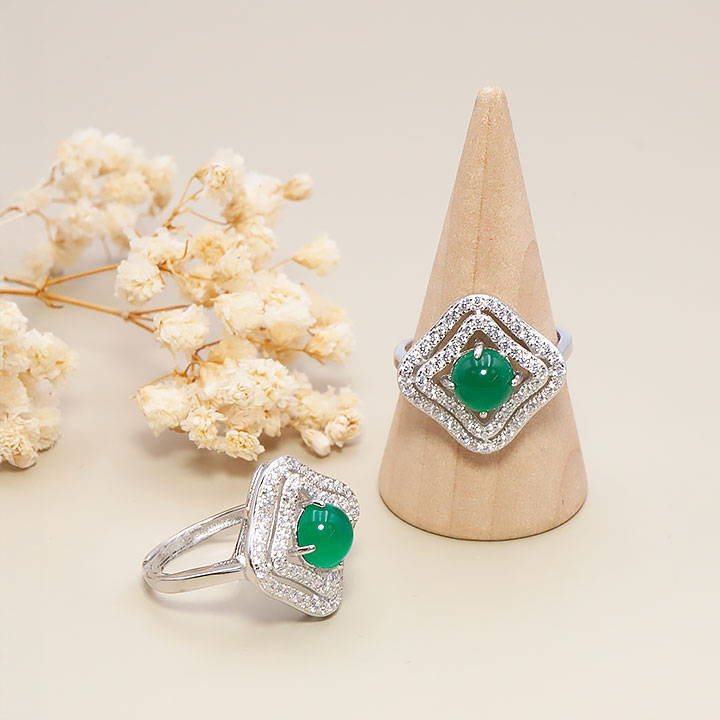 content: 925 rhodiniertes Silberringmodell 09 Chrysopras AA+ (1 Stück) Set Nr.1A0425