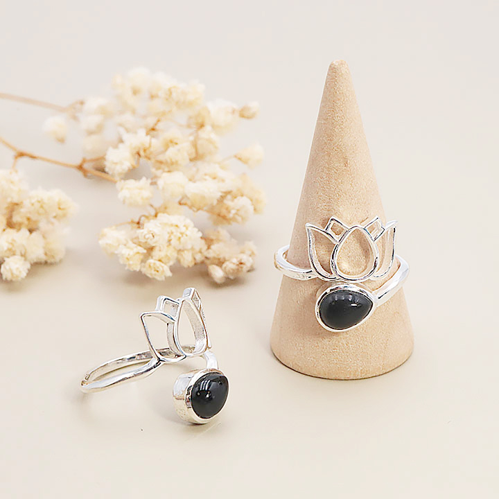 Silberring 925 Modell 02 schwarze Obsidian AA (1 Stück) Set Nr. 1A0525