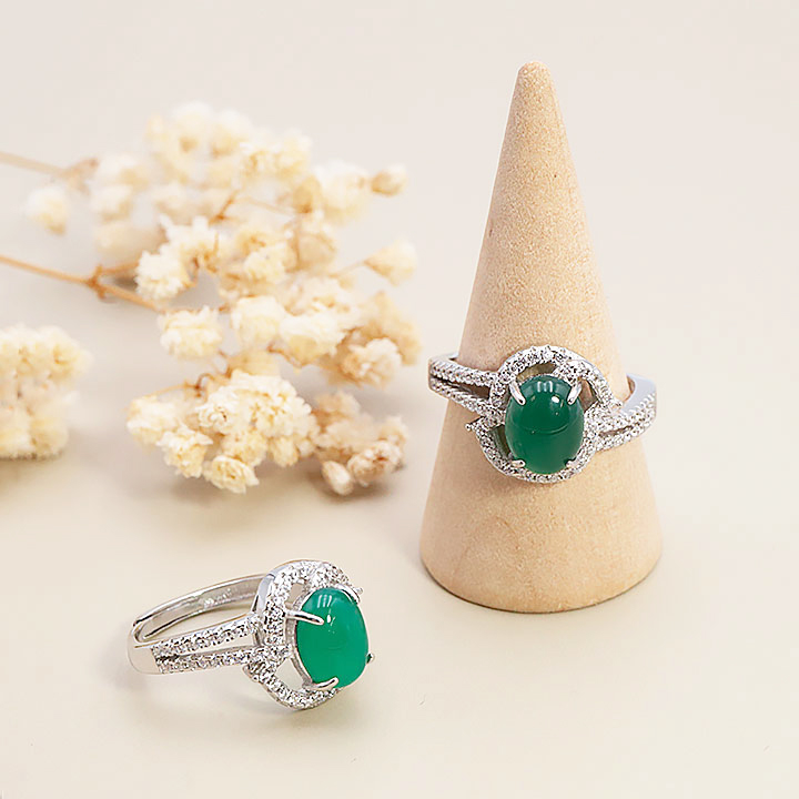 Ring Silber 925 rhodiniert Modell 08 Chrysopras AA+ (1 Stück) Set N°1A0425