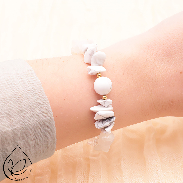 Silbernes Célyos Armband weiße Howlith, Onyx A