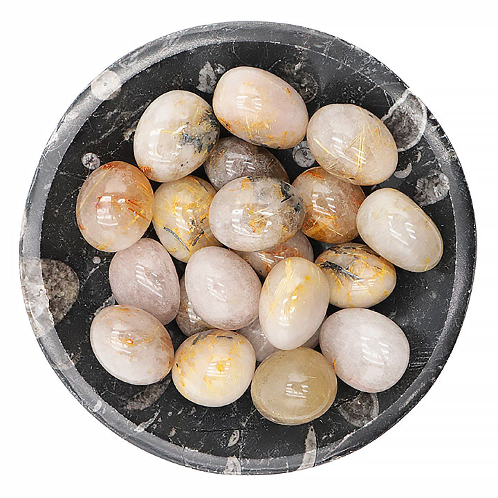 Getrommelter Stein Kristallquarz Rutil Turmalin A+ 15 bis 30mm (Set 200g)