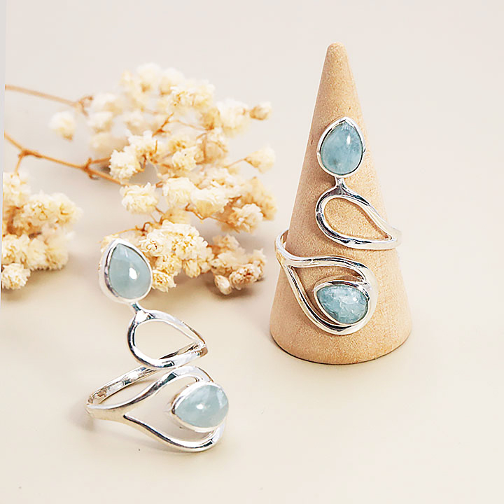 925 Silberring Modell 05 Aquamarin Namibia AA (1 Stück) Set N°1A0525