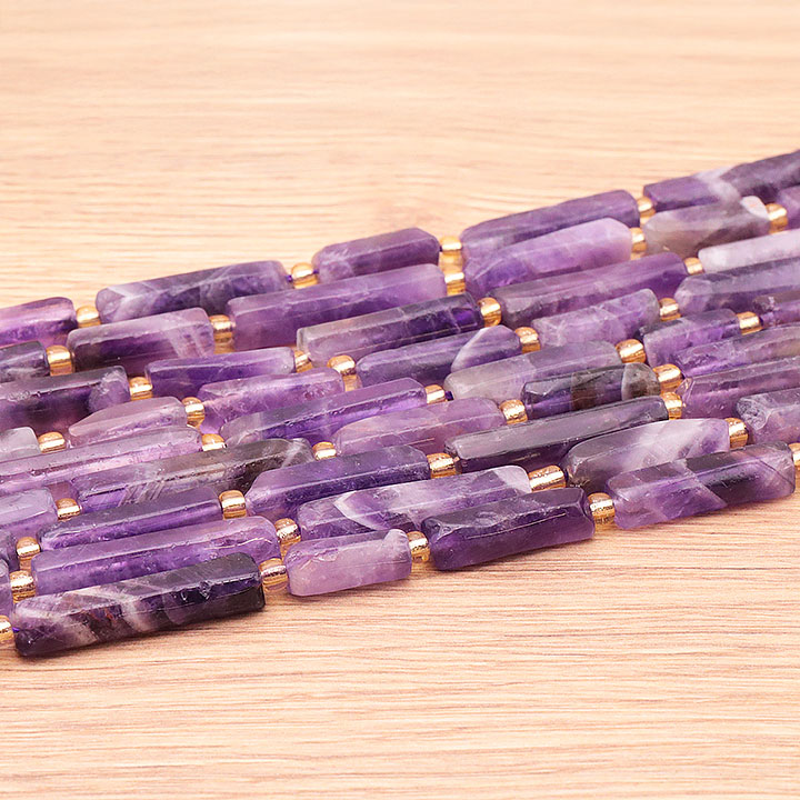 Strang aus horizontalen Röhrenperlen 06 x 27mm gebänderter Amethyst Brasilien AA