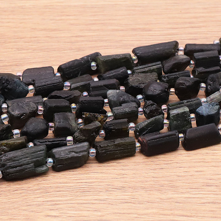 Perlenfaden rohe Steine 06 x 15mm kristallisierter grüner Turmalin A
