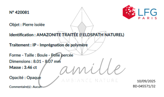 Bei unseren verschiedenen Mineralieneingängen wählen wir eine oder mehrere Proben aus der Gesamtheit einer Charge aus und legen sie dem LGF zur Analyse vor. Wir haben diese Arbeitsmethode gewählt, um ein Höchstmaß an Sicherheit in Bezug auf die Qualität und Authentizität unserer Steine zu gewährleisten. Wir möchten darauf hinweisen, dass es angesichts der Kosten für die Analyse natürlich unmöglich ist, jeden verkauften Stein oder jede verkaufte Perle begutachten zu lassen. Diese Methode der Begutachtung ermöglicht uns jedoch eine regelmäßige Kontrolle, die die Aufrichtigkeit unserer Lieferanten und das Vertrauen unserer Kunden fördert.