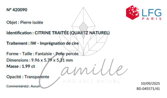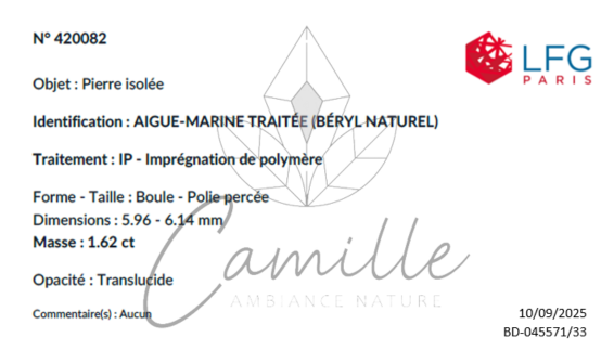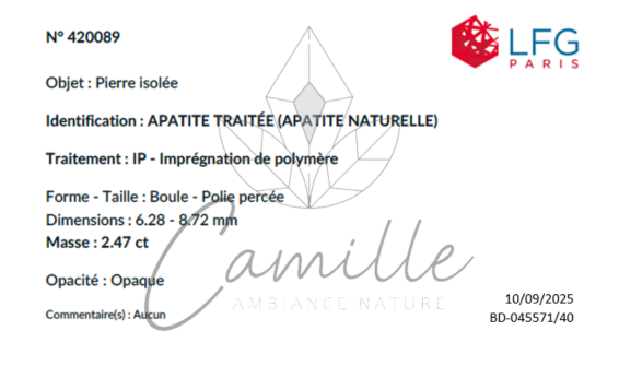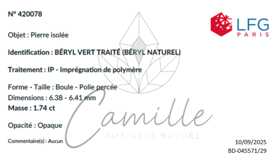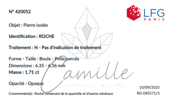 Bei unseren verschiedenen Mineralieneingängen wählen wir eine oder mehrere Proben aus der Gesamtheit einer Charge aus und legen sie dem LGF zur Analyse vor. Wir haben diese Arbeitsmethode gewählt, um ein Höchstmaß an Sicherheit in Bezug auf die Qualität und Authentizität unserer Steine zu gewährleisten. Wir möchten darauf hinweisen, dass es angesichts der Kosten für die Analyse natürlich unmöglich ist, jeden verkauften Stein oder jede verkaufte Perle begutachten zu lassen. Diese Methode der Begutachtung ermöglicht uns jedoch eine regelmäßige Kontrolle, die die Aufrichtigkeit unserer Lieferanten und das Vertrauen unserer Kunden fördert.
