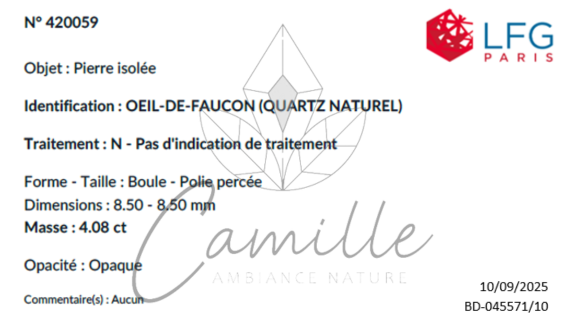 Bei unseren verschiedenen Mineralieneingängen wählen wir eine oder mehrere Proben aus der Gesamtheit einer Charge aus und legen sie dem LGF zur Analyse vor. Wir haben diese Arbeitsmethode gewählt, um ein Höchstmaß an Sicherheit in Bezug auf die Qualität und Authentizität unserer Steine zu gewährleisten. Wir möchten darauf hinweisen, dass es angesichts der Kosten für die Analyse natürlich unmöglich ist, jeden verkauften Stein oder jede verkaufte Perle begutachten zu lassen. Diese Methode der Begutachtung ermöglicht uns jedoch eine regelmäßige Kontrolle, die die Aufrichtigkeit unserer Lieferanten und das Vertrauen unserer Kunden fördert.